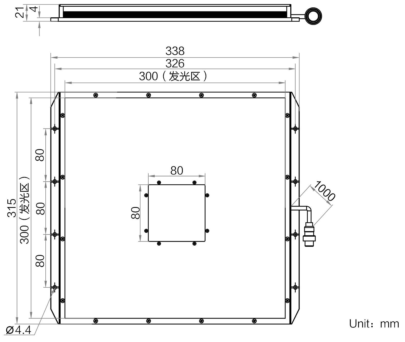 结构 | 外形尺寸 | 338 mm × 315 mm × 21 mm |