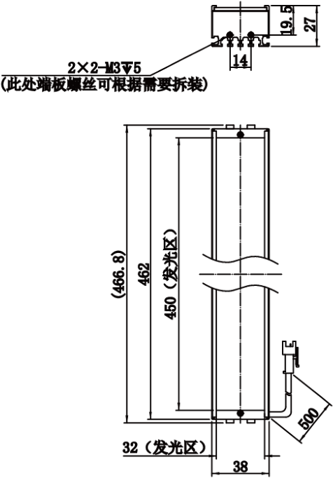 外形尺寸 | 462 mm × 38 mm × 27 mm |