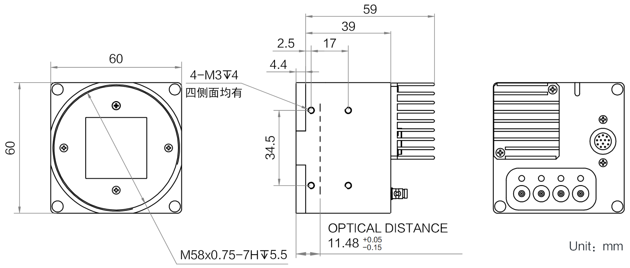 结构 | 镜头接口 | M58*0.75镜头接口,法兰后焦11.48 mm |