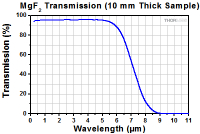 氟化镁透射率曲线图:10 mm厚的未镀膜样品,透射率曲线中包含了表面反射。