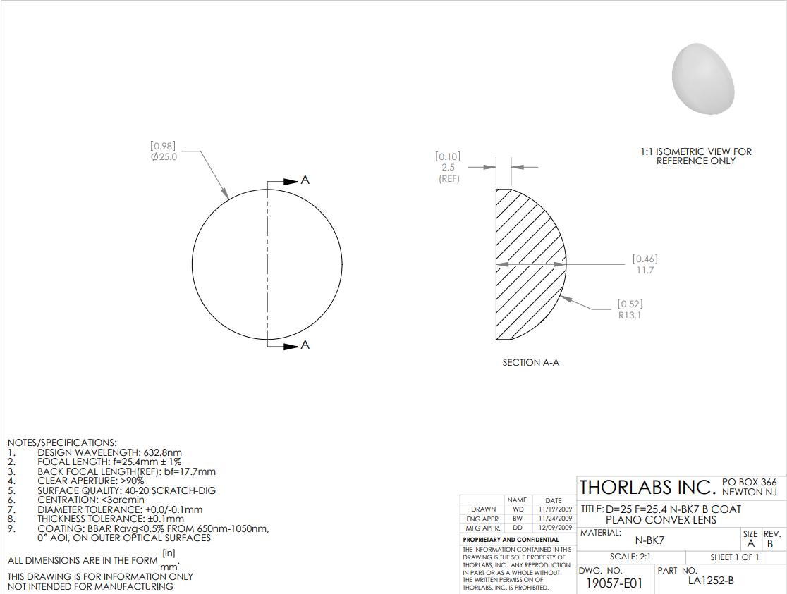 - Ø25 mm透镜的设计波长为632.8 nm。
