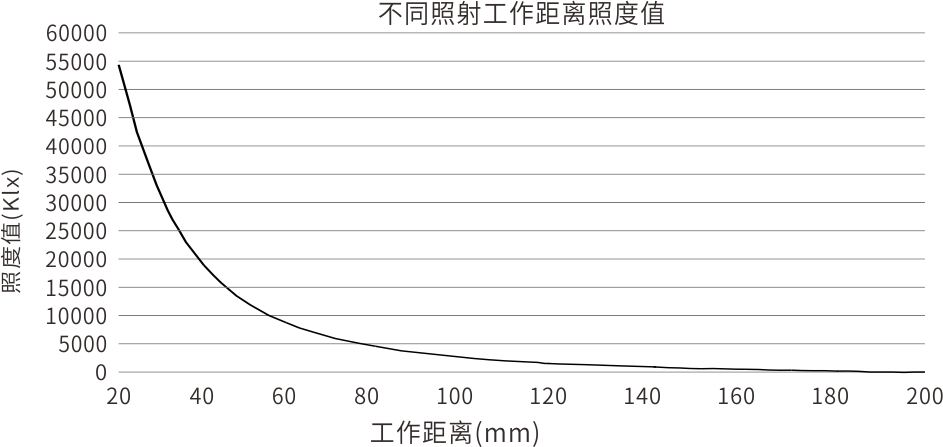 工作距离与照度曲线(代表例:PLF4-250W-1-LSE)