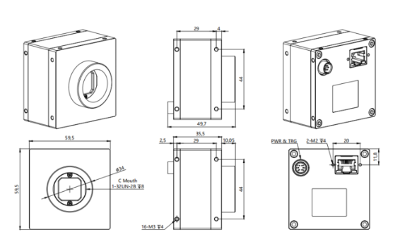 59.5X59.5X35.5mm (以上尺寸都不含镜头座和后壳接口)