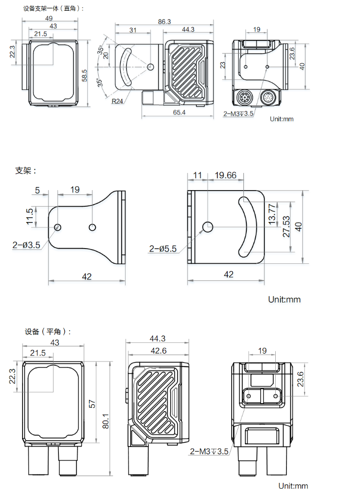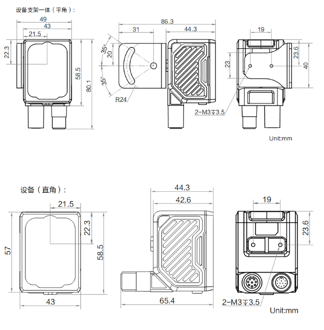 外形尺寸 | 平角:80.1 mm × 43 mm × 44.3 mm 直角:58.5 mm × 43 mm × 65.4 mm |