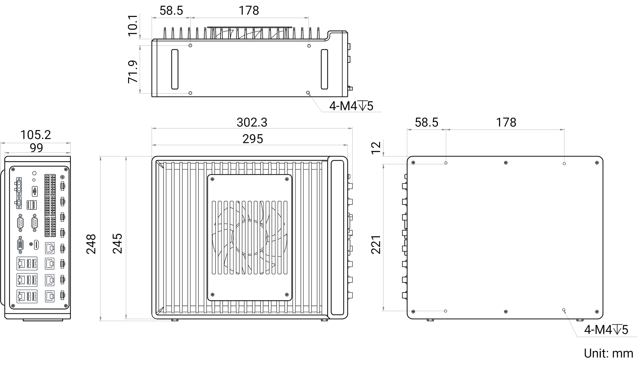 | 结构 | 外形尺寸 | 302.3 mm × 248 mm × 105.2 mm |