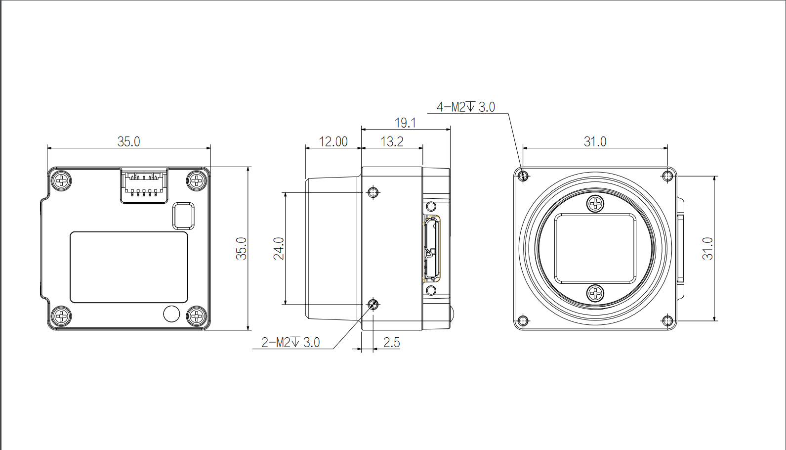 ● 结构紧凑,尺寸为35mm*35mm*19mm;