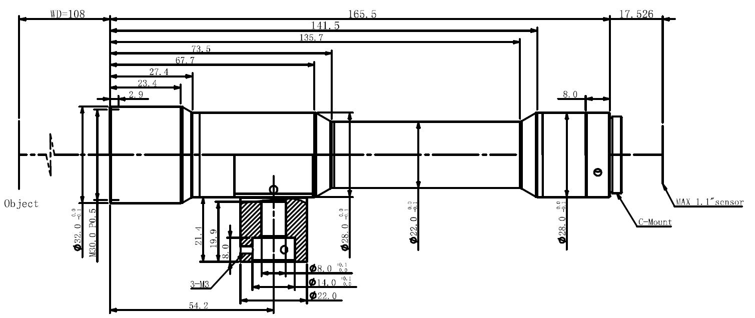名称 | 108mm工作距,1.1",4x,带同轴光接口 |