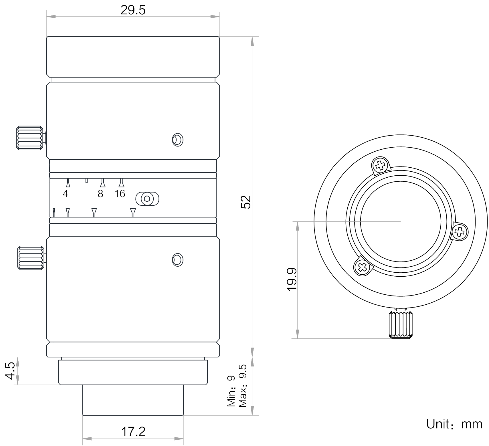 像面尺寸 | Φ9 mm(1/1.8'') |