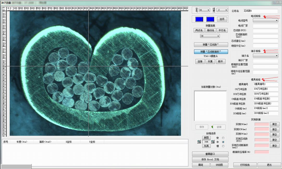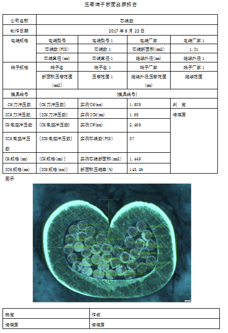 DZ-3000端子分析软件 | 1、端子断面测量分析功能:本软件可测量端子芯线数;压接高度;压接宽度;压接角度;支承高度;尖端间距;毛刺高度;毛刺宽度;基体厚度;芯线断面积;断面积压缩比率。 2、新建报告及打开报告: 可按用户需求制作报告文档的录入界面、软件可自动生成电子报告文档,报告文档内容包括检验单位信息、分析结果、附有标尺及设定的倍数照片、并提供报告的保存和打印功能。报告可保存成word、PDF、及EXCEL表格三种格式。用户也可以新建或打开以软件独有.dt格式的报告文件。 3、几何测量功能: 本软件提供了:“点”、“直线”、“矩形”、“圆”、“多边形”、“角度”等多种测量工具及测量方法,可完成长度、面积、角度等测量工作。可在测量图上备注文字,标尺,设定固定倍数等。测量完成后可通过软件功能生成一份单图或多图的测量报告。 |