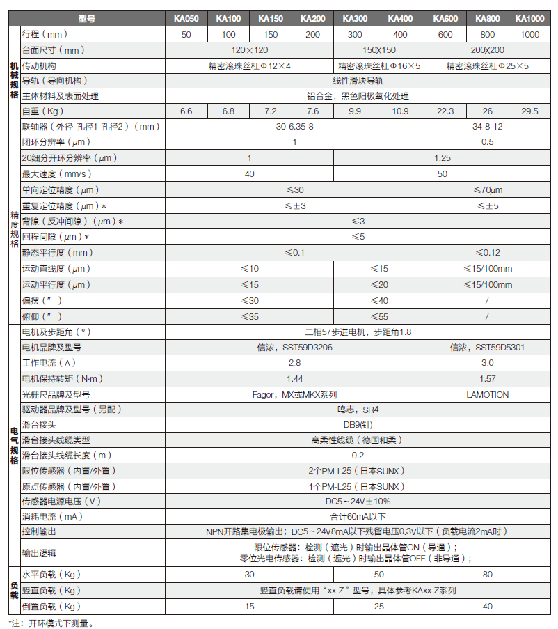 KA系列高精密电动直线滑台特点:
