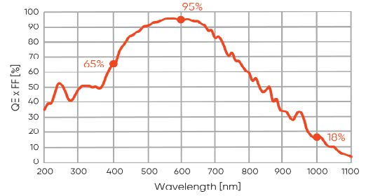 峰值量子效率 | 20% @440nm | 22%@720nm |