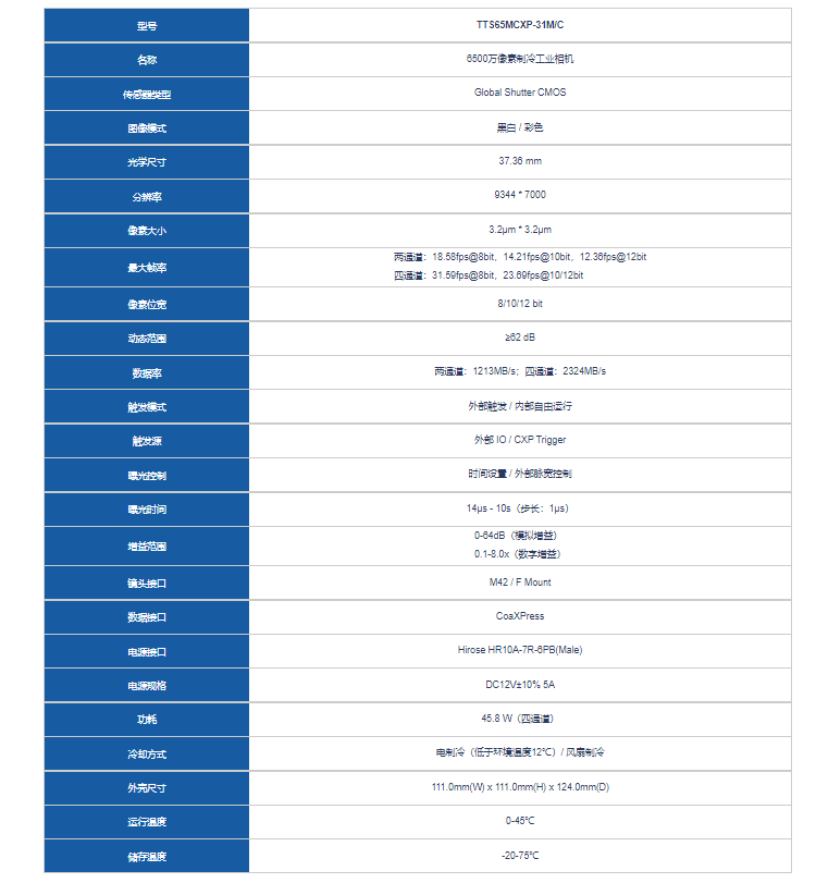 I-Tek埃科 TTS65MCXP-31M/C 高速面扫描相机