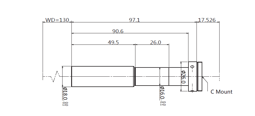 名称 | 130mm工作距,1/2",0.8x,不带同轴光接口 |