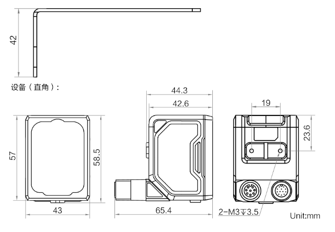 外形尺寸 | 平角:80.1 mm × 43 mm × 44.3 mm 直角:58.5 mm × 43 mm × 65.4 mm |