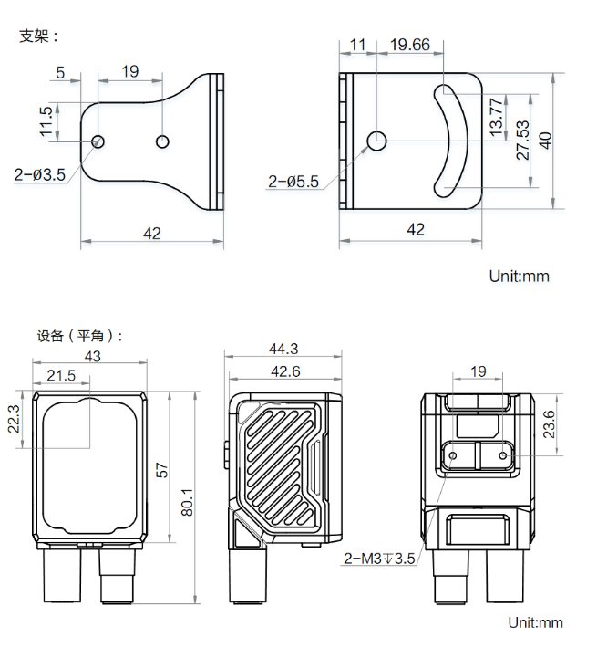 外形尺寸 | 平角:80.1 mm × 43 mm × 44.3 mm 直角:58.5 mm × 43 mm × 65.4 mm |