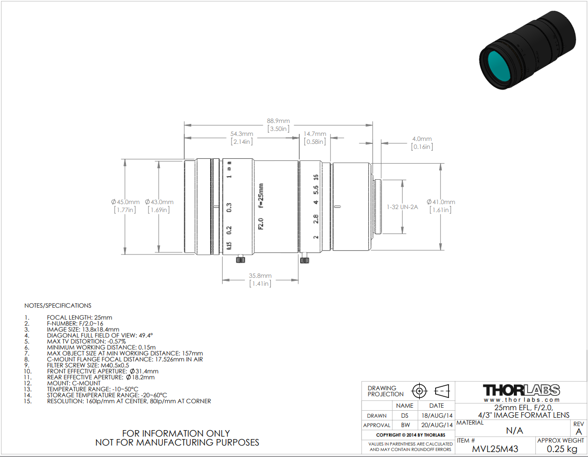 Thorlabs索雷博 MVL25M43 定焦镜头