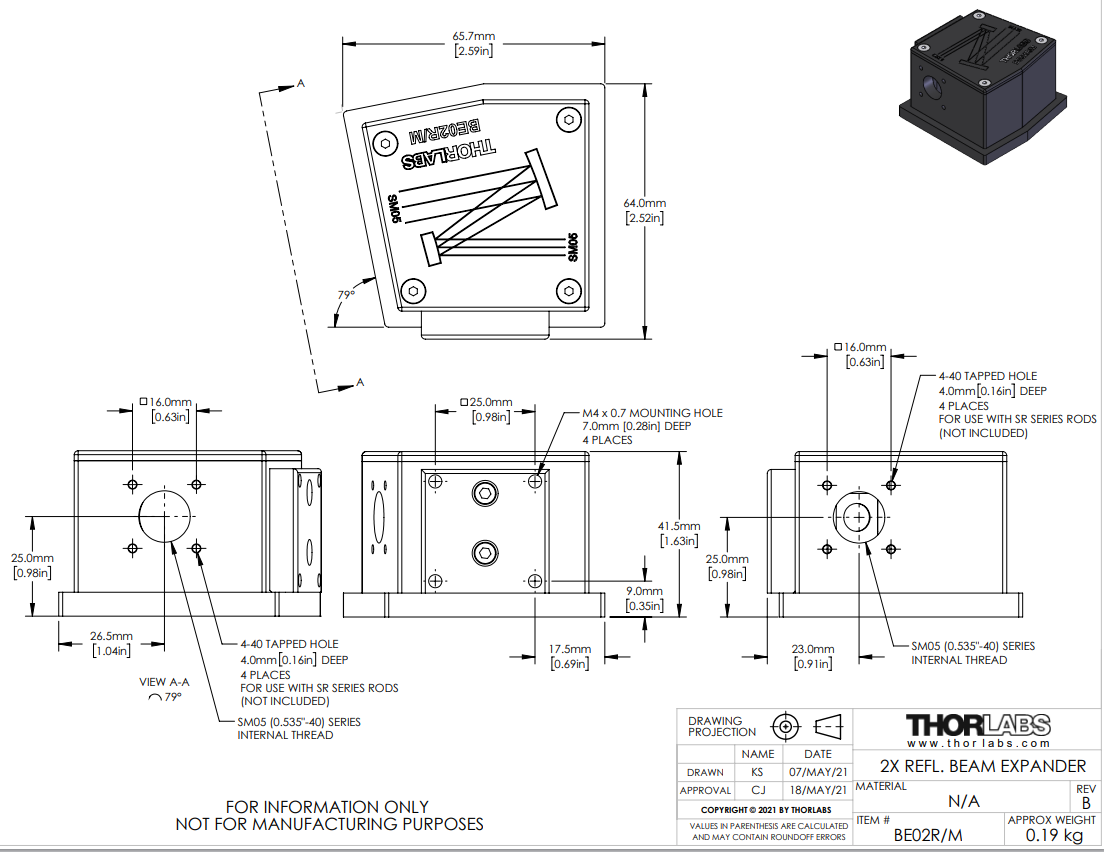 Thorlabs索雷博 BE02R/M 反射型光束扩束器