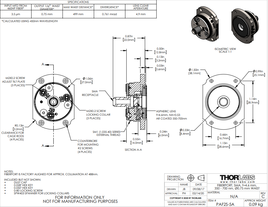 Thorlabs索雷博 PAF2S-5A 带非球面透镜