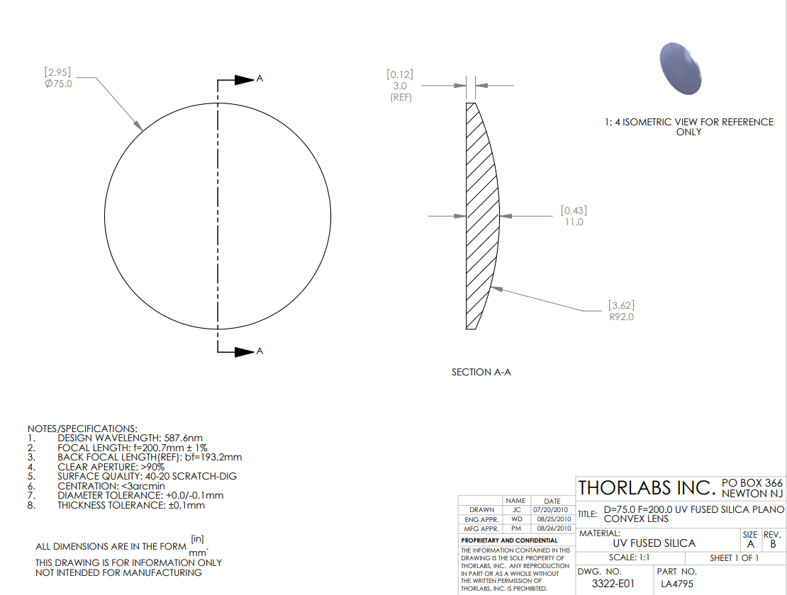 其中,n是折射率,R是透镜表面的曲率半径。这些透镜由阿贝数为67.82的紫外级熔融石英制成;阿贝数是色散指标。