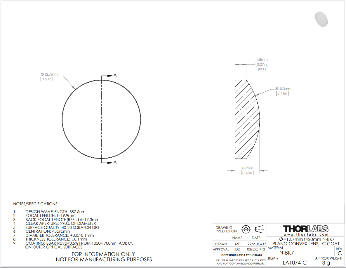 Table 1.1 N-BK7 Plano-Convex Lens Selection Guide |