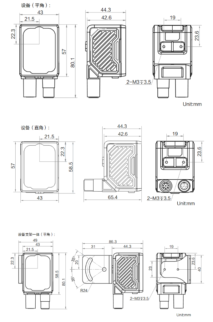 外形尺寸 | 平角:80.1 mm × 43 mm × 44.3 mm 直角:58.5 mm × 43 mm × 65.4 mm |