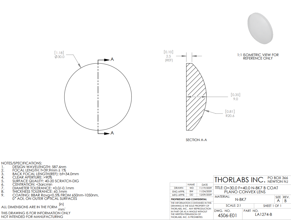其中n是折射率,R是透镜表面的曲率半径。这些透镜使用阿贝数为64.17的N-BK7材料生产;阿贝数是色散指标。