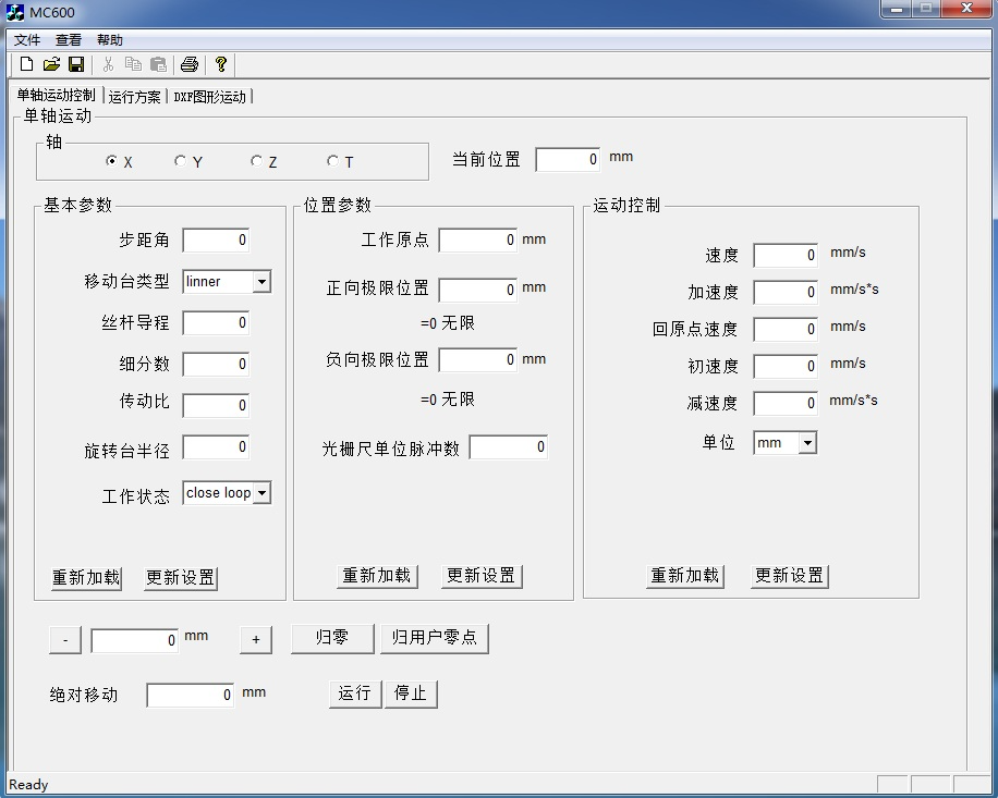 ● 可以利用ZolixMC600控件编程,方便实现各种运动控制需求,也可以利用MC600控制软件,进行简单的运动控制方案,可以方便的设置运动参数和位置参数,与自行开发相比,可大大减少工作量。
