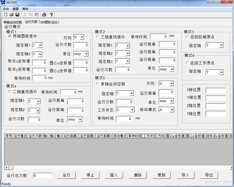 ● 运行方案界面,可对单轴或多轴运动,设置运行方案,方便进行连续地自动运行