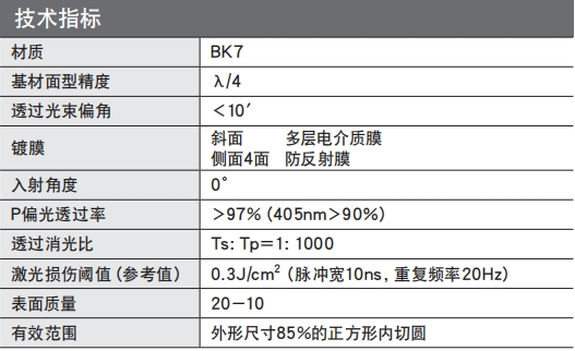 ●镀有多层电介质膜,光量损失很小,可以有效地分离偏振光。
