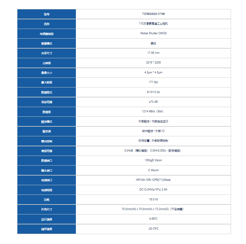 I-Tek埃科 TS7MSXGV-171M 高速面扫描相机