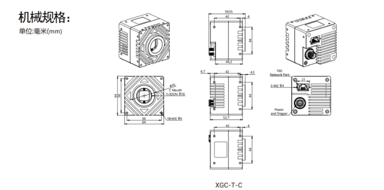 64x64x52.7mm(不含镜头座和后壳接口)