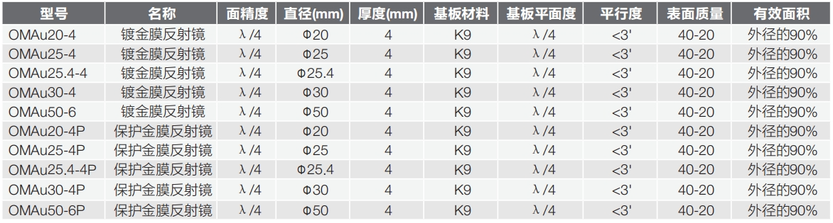 OMAu系列镀金膜反射镜