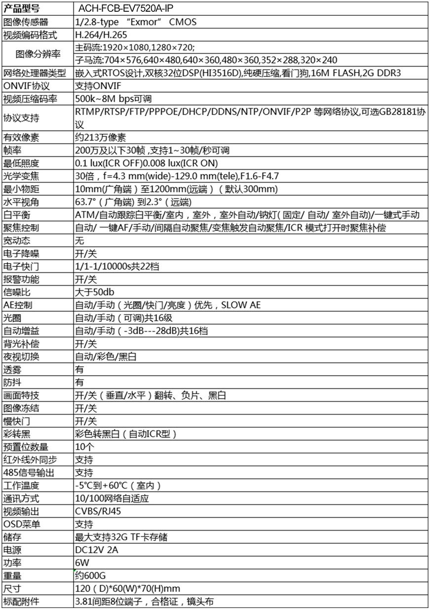 ACHTECH 上海图星 ACH-FCB-EV7520A-IP 工业相机