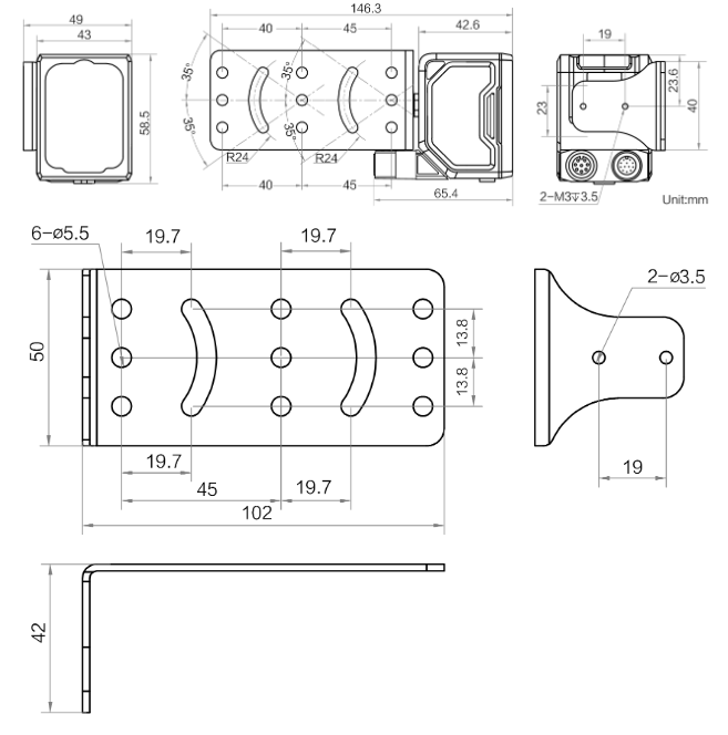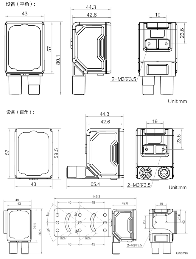 外形尺寸 | 平角:80.1 mm × 43 mm × 44.3 mm 直角:58.5 mm × 43 mm × 65.4 mm |