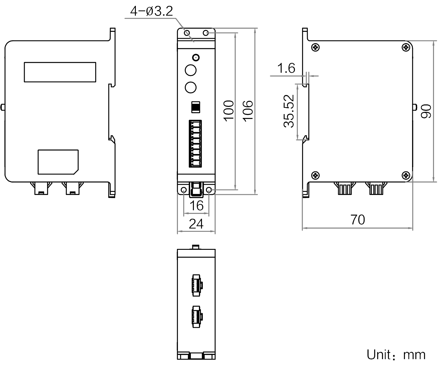 工业化设计,支持导轨或螺孔安装