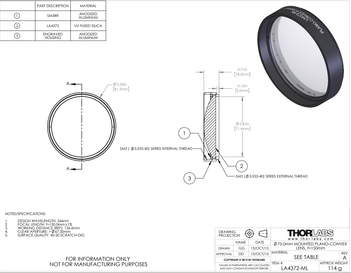 Thorlabs索雷博 LA4372-ML 平凸透镜