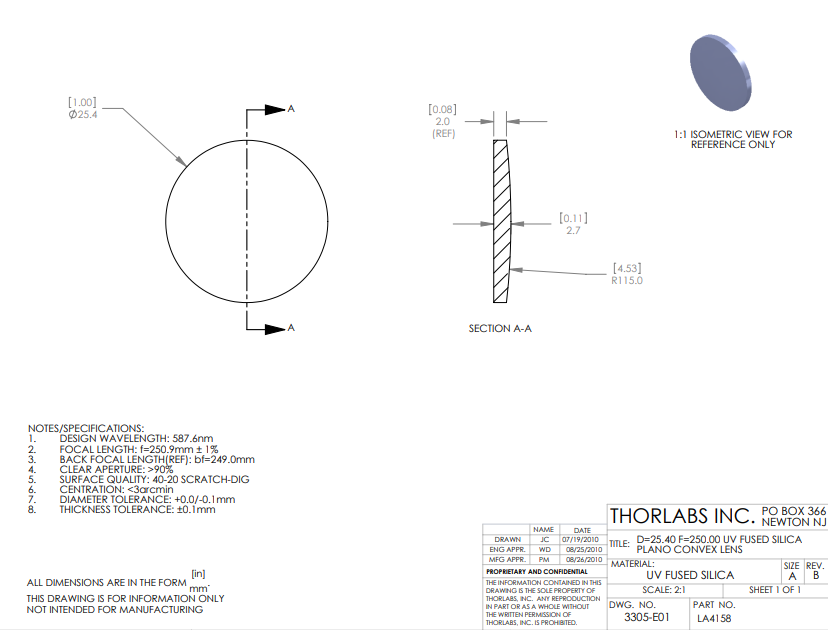其中,n是折射率,R是透镜表面的曲率半径。这些透镜由阿贝数为67.82的紫外级熔融石英制成;阿贝数是色散指标。