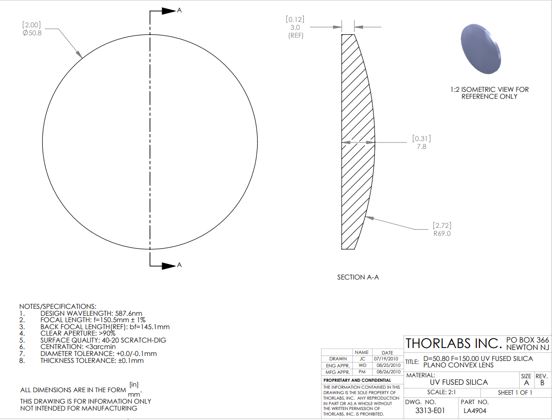 其中,n是折射率,R是透镜表面的曲率半径。这些透镜由阿贝数为67.82的紫外级熔融石英制成;阿贝数是色散指标。