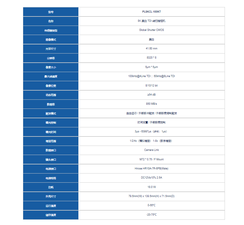 • I-Tek埃科    PL8KCL-100KT   线扫描相机