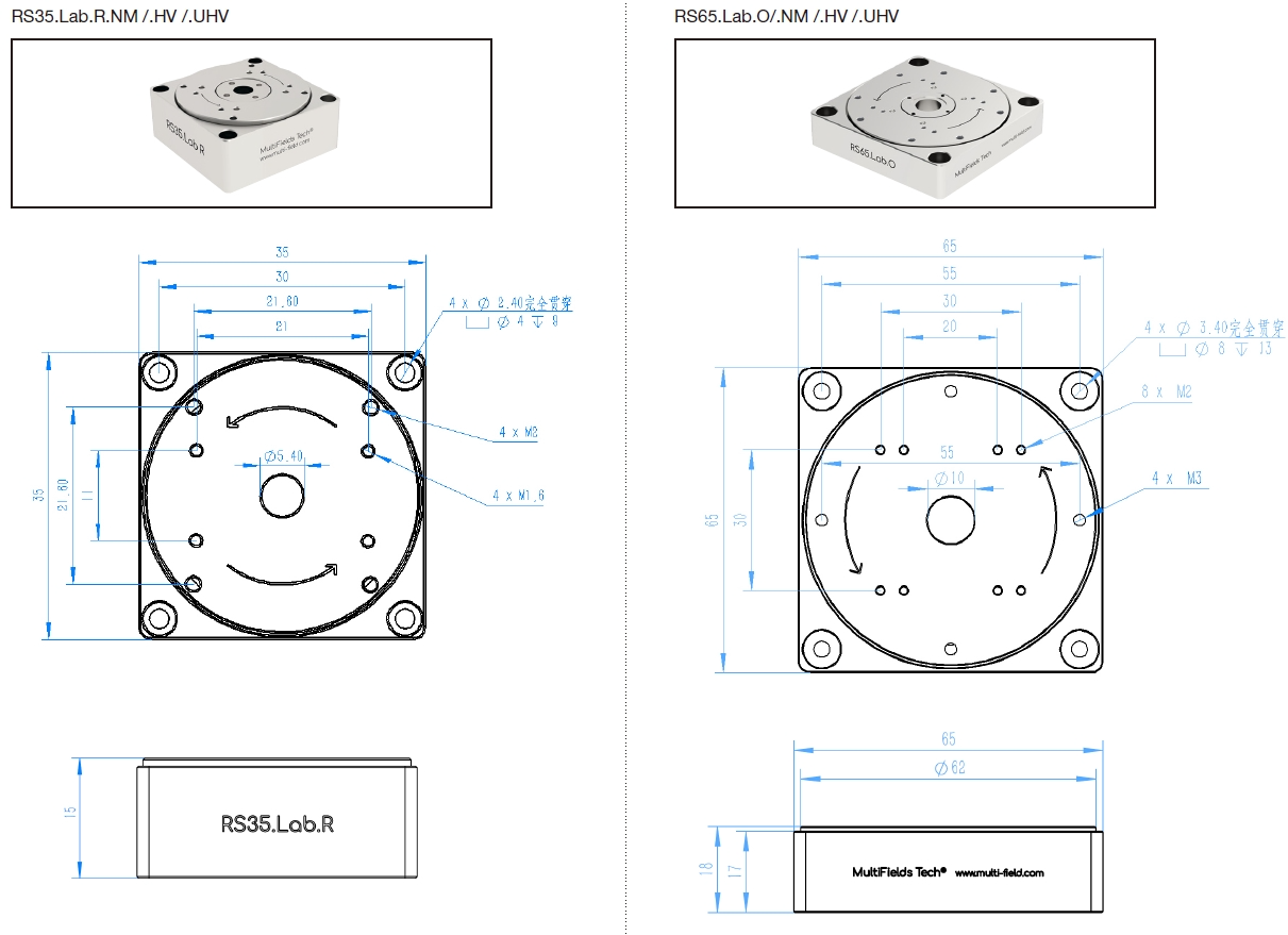 RSxx.lab.O/R系列压电纳米旋转台选型表