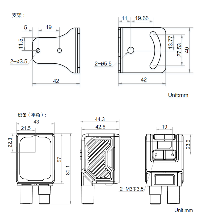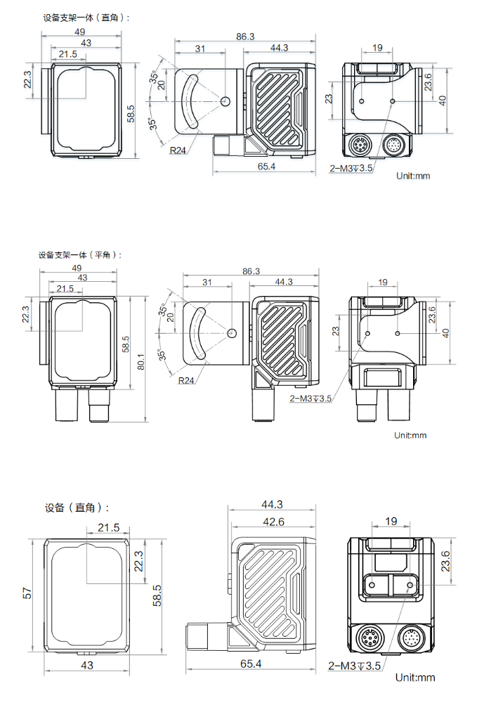 外形尺寸 | 平角:80.1 mm × 43 mm × 44.3 mm 直角:58.5 mm × 43 mm × 65.4 mm |