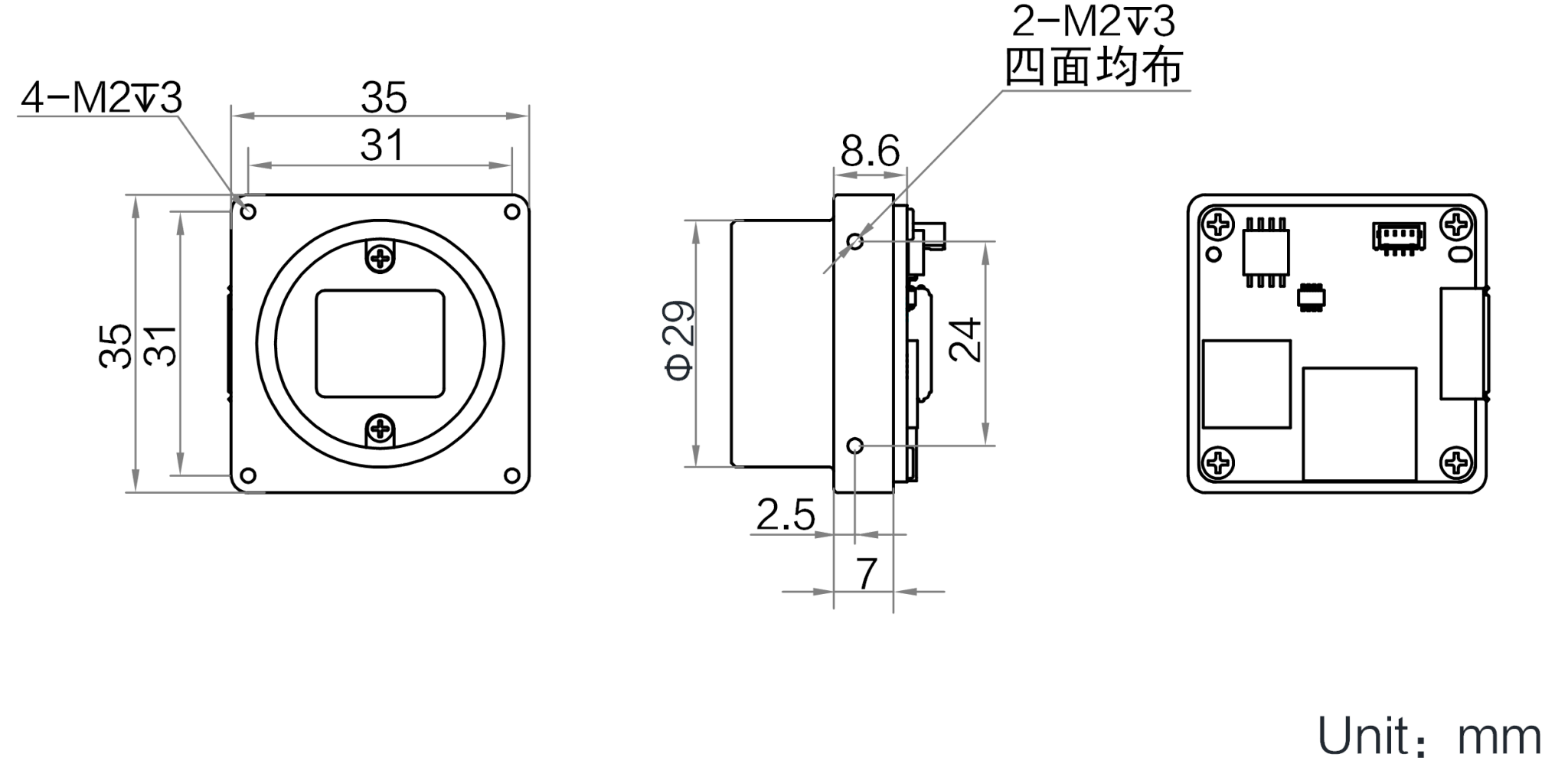 外形尺寸 | 35 mm×35 mm×8.6 mm |
