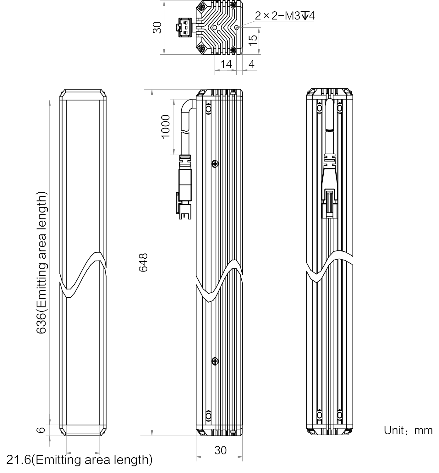 发光区尺寸 | 636 mm × 21.6 mm |