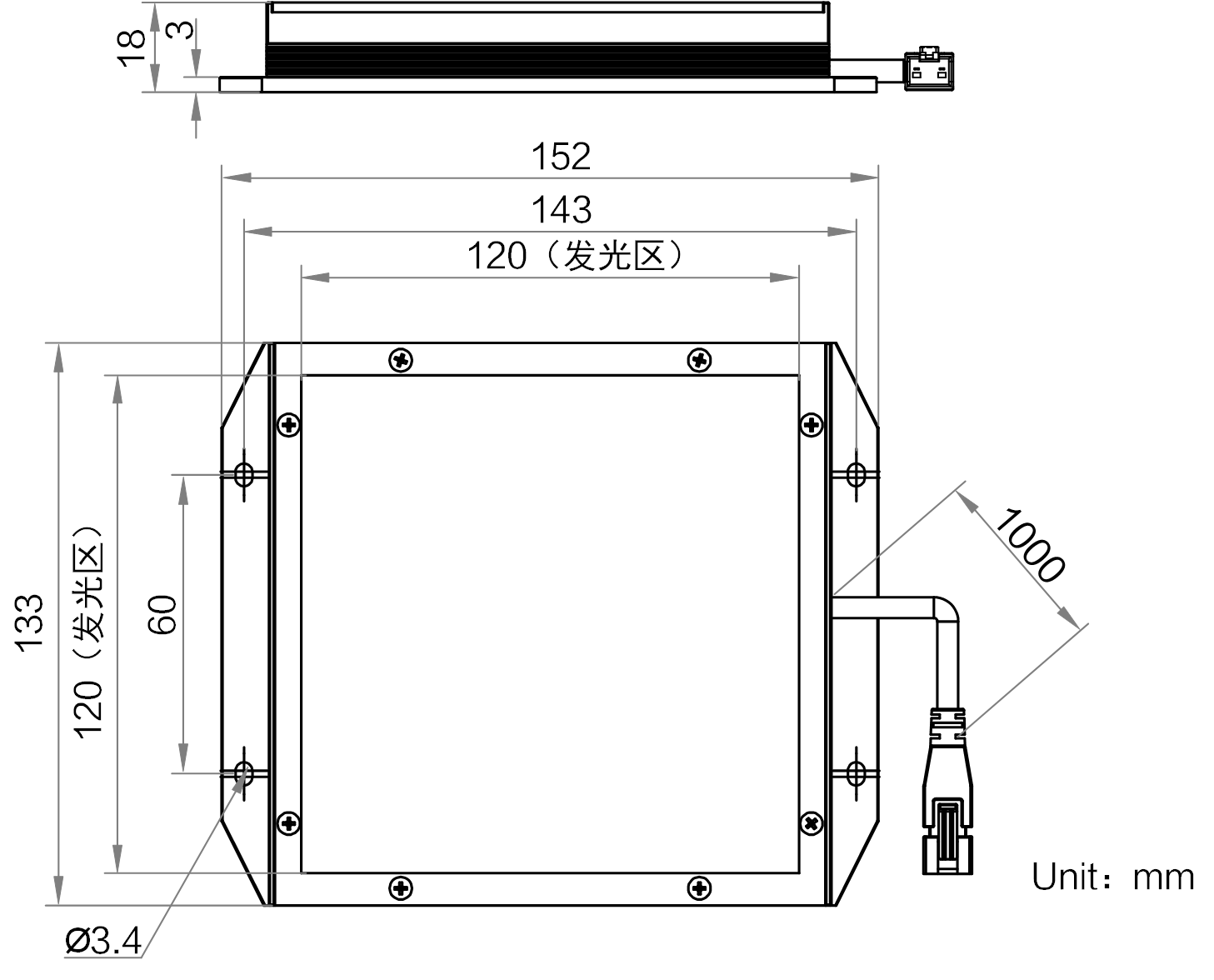 发光区尺寸 | 120 mm × 120 mm |