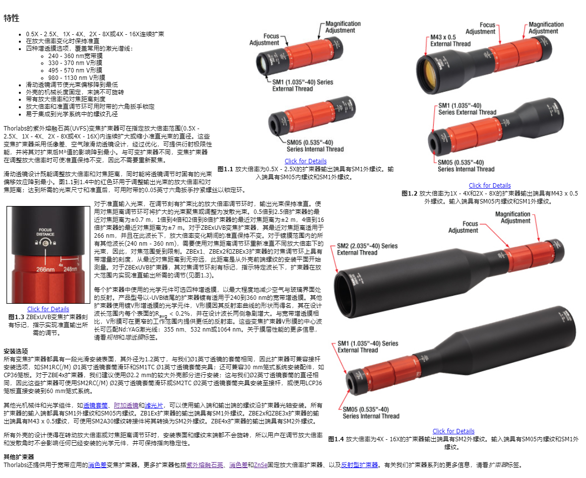 Thorlabs索雷博 ZBE3UVB 变焦扩束器