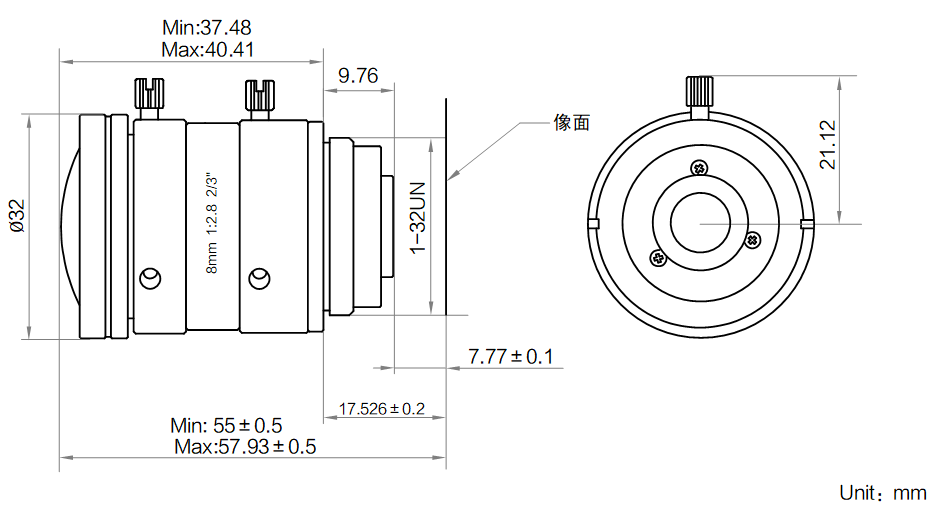 | 像面尺寸 | Φ11.2 mm(2/3'') |