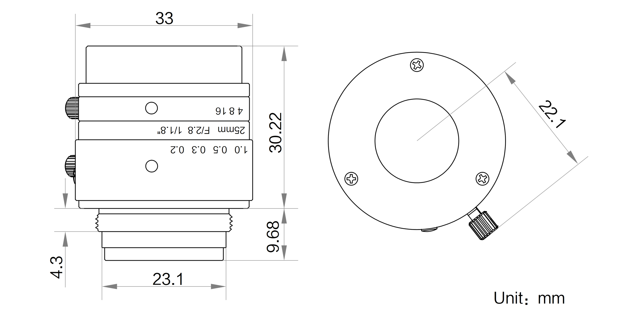 名称 | 25mm,F2.8,1/1.8",600万分辨率,C接口镜头 |