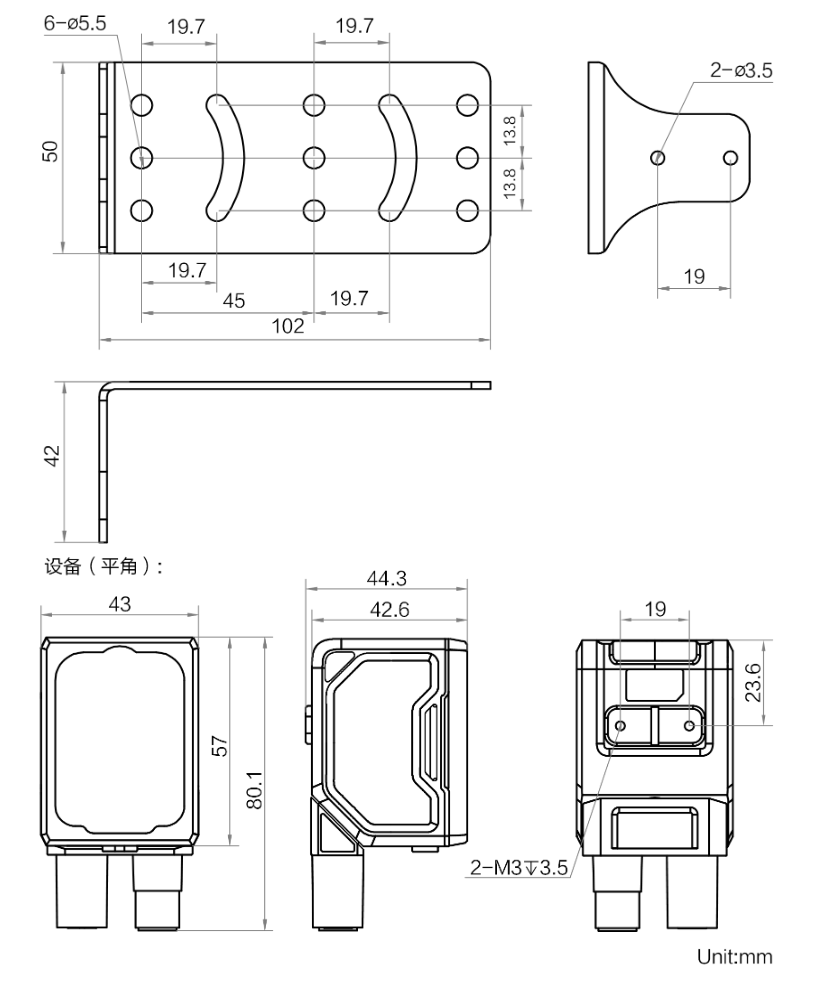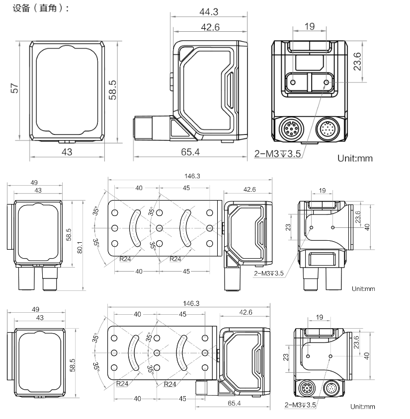 外形尺寸 | 平角:80.1 mm × 43 mm × 44.3 mm 直角:58.5 mm × 43 mm × 65.4 mm |