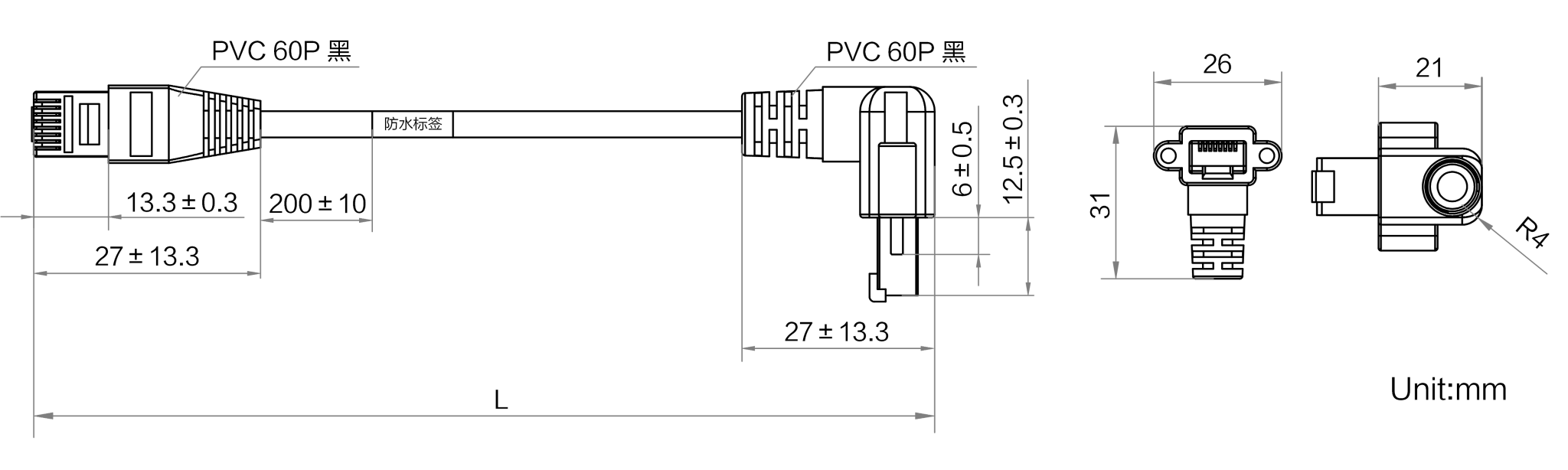 | 物理规格 | A端接口 | RJ45(带锁定螺柱),弯头(上出线) |