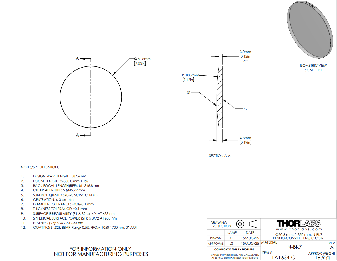 Thorlabs索雷博 LA1634-C 平凸透镜